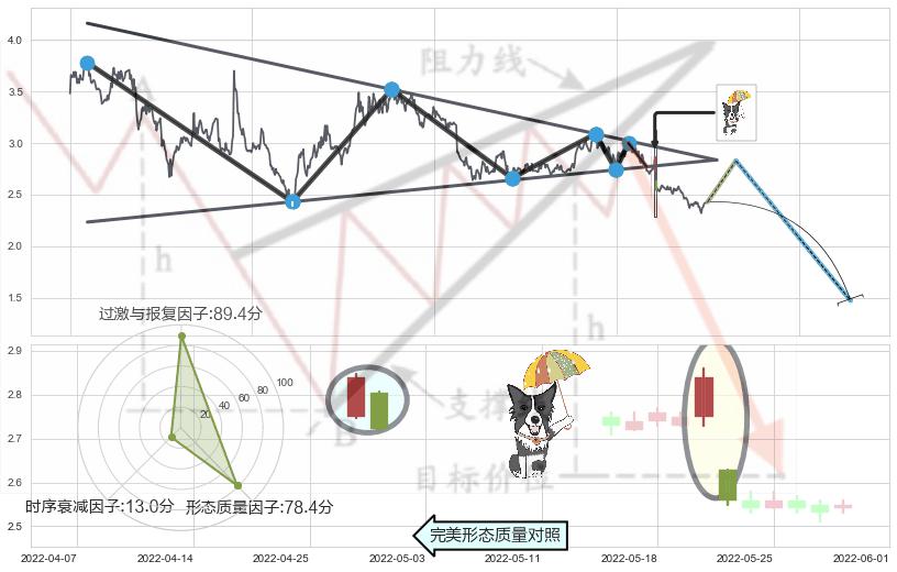 ➢ 【卖1】: 激进型 卖点→(2022-05-06: 2.770 )形成突破下降【对称】三角形整理【整理】形态
