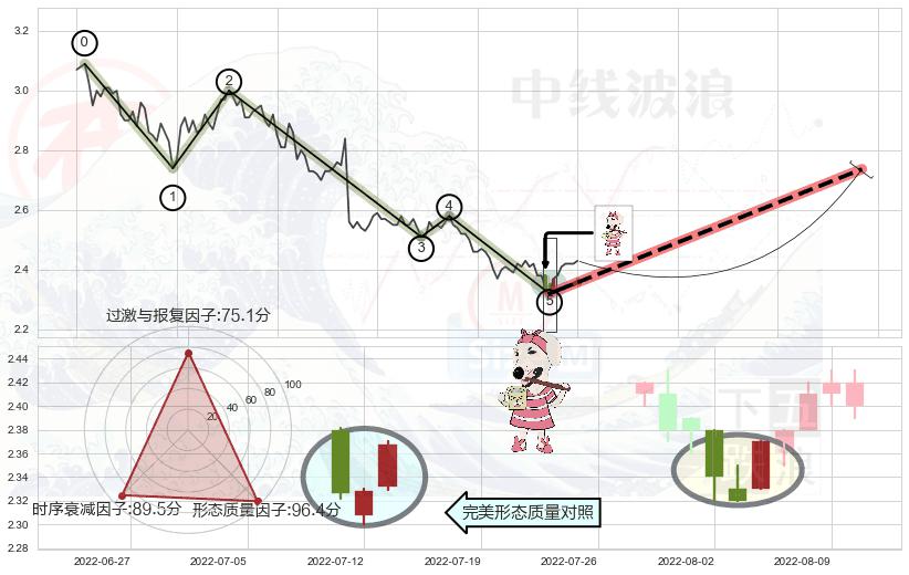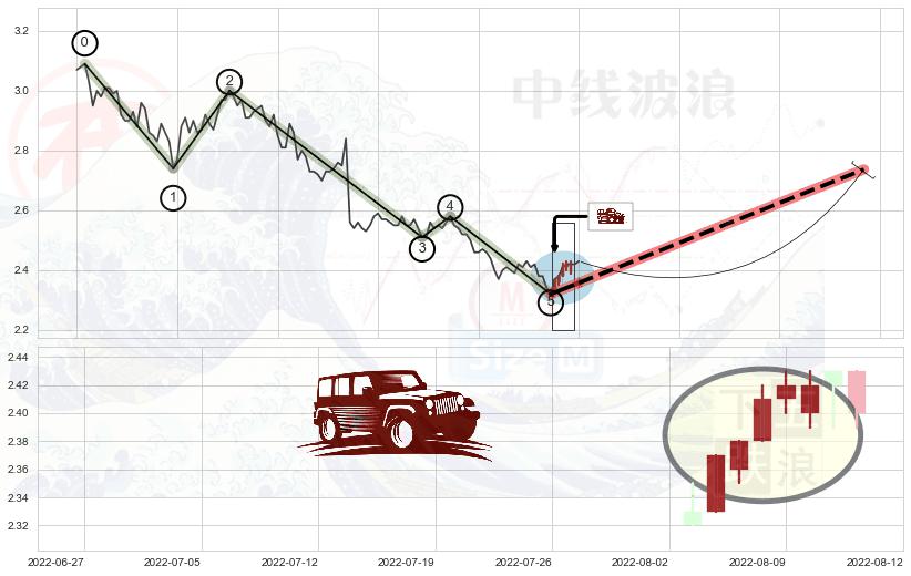➢ 🕰 价格走势在2022-08-04至2022-08-10期间形成低档五阳线,残存影响值:3.95