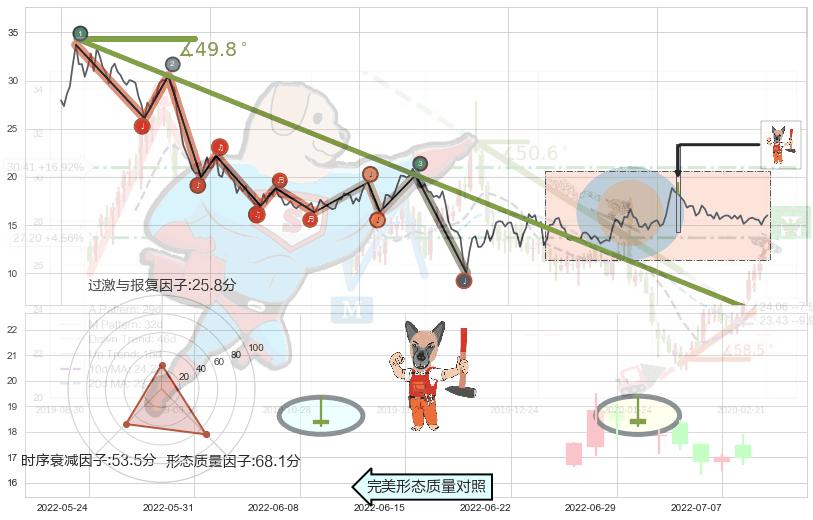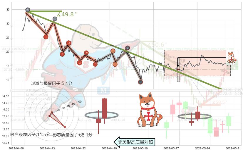 ➢ 2021-09-01-2022-04-13下跌趋势存在反转上涨[机会],其原下跌趋势的阻力位(5.56)已被突破[强支撑信号],原下跌趋势角度: 49.8˚