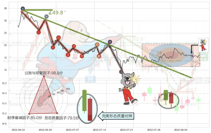 ♘ 支撑价格位15.21,可信任强度91.60%,距离最后交易2022-08-12形成的收盘价格16.02相差 -5.04%