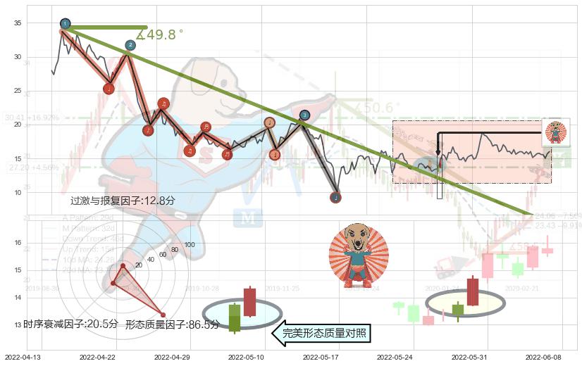 从2021-09-01至2022-04-13,共包含152个交易日,阶段股价下跌-65.50%,阶段股价变动位移路程比: 1 : 8,下跌趋势角度: 49.8