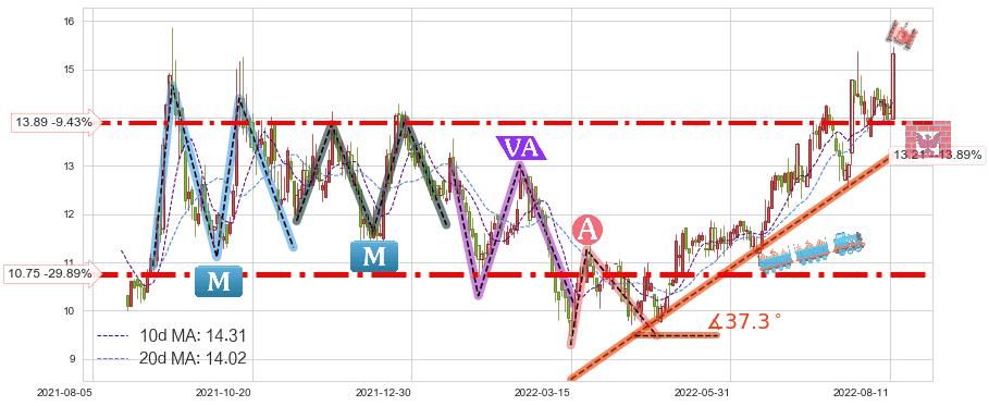 ➢ 2022-08-12到达第❸价格目标位置15.34