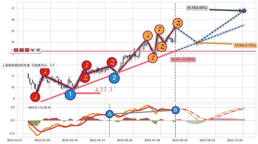 ➣ 预测:2022-10-21,【继续上扬】稳定目前上涨趋势的前提下,预测价格:16.78