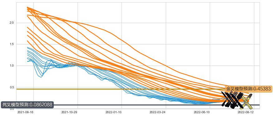➢ 21小时均线于(2022-07-08: 0.226667)形成【死叉】基于【死叉历史模型】预测死叉后最低波谷价格: 0.0150714, 死叉后最低价格0.139000,尚未达到预测最低波谷价格, 预期继续下跌