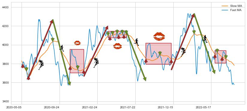 2022-03-08至2022-05-31 慢线与快线呈空头排列, 慢线与快线接触少,无缠绕