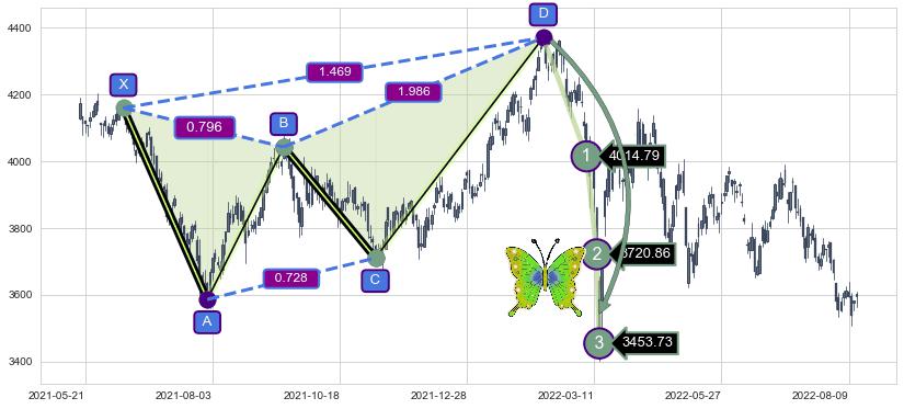 ➣ 已完成【蝴蝶】形态起点X: 2021-06-11, 终点D: 2022-02-11, 共166交易日