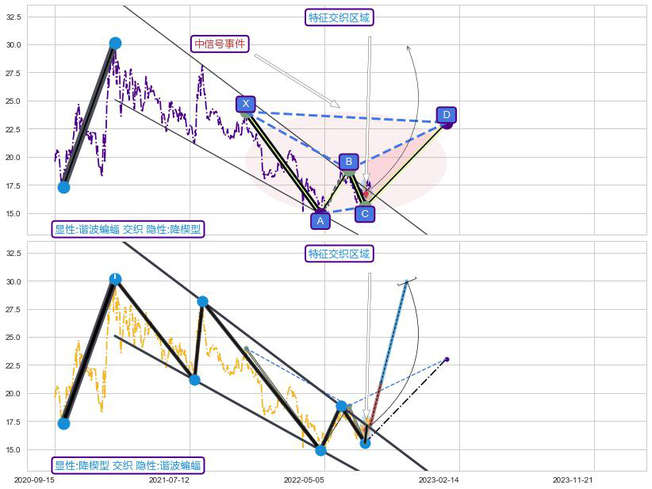 ➢ 未完成【蝙蝠】形态起点X: 2021-11-10, 已到达C点: 2022-08-02, 预测最终D点: 2023-01-18, 共294交易日