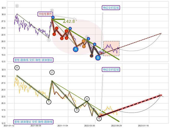 ➣ 波浪理论:猜想止跌 → 上涨 →【拐点】浪5已完成 → 大趋势均值回复