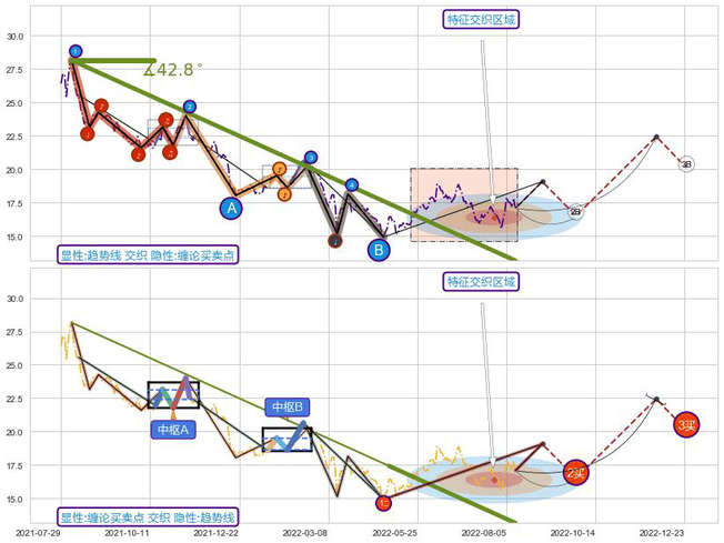 ➢ 趋势线与缠论买卖点信号事件周期长度级别相同,同周期信号事件