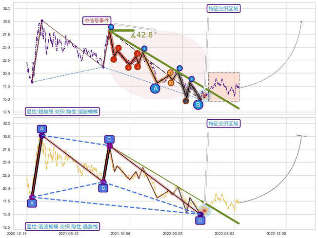 ➢ 已完成【蝴蝶】形态起点X: 2020-12-29, 终点D: 2022-04-26, 共325交易日