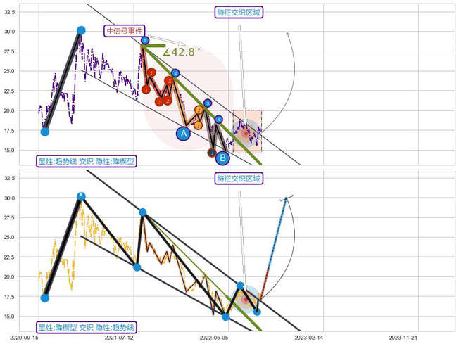➢ 趋势线属【中级别信号事件】降楔型属【长级别信号事件】中长周期组合信号事件,中长事件长度比42.48%