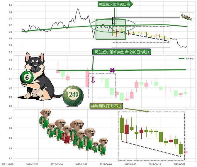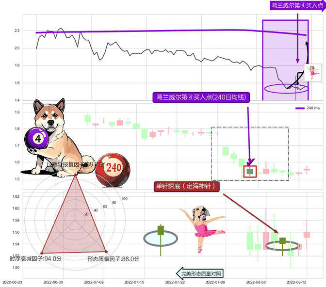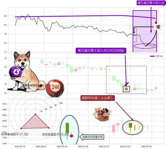 ➣ 2022-08-03-日显现 葛兰威尔均线 240日均线 第④买入点 下降趋势均值回复的短线反弹信号,后市看涨,买进信号