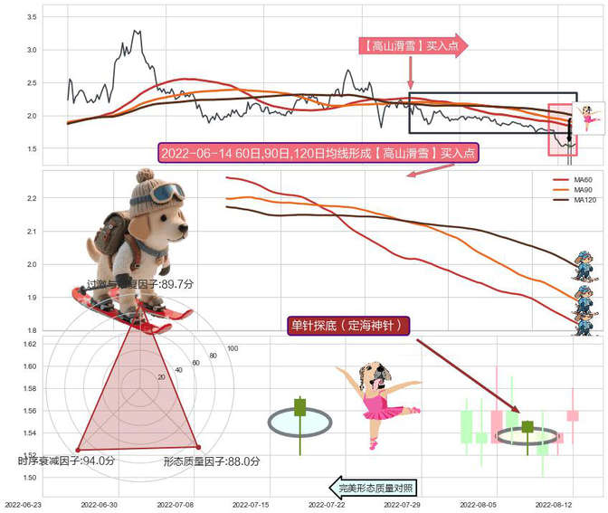 ➣ 单针探底(定海神针) + 【高山滑雪】买入点高山滑雪见底拐点买入点信号叠加后【信号初始稳固度】中等,【看多】信号叠加【可信度影响中等】