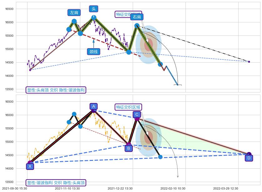 ➢ 头肩顶与谐波伽利信号事件周期长度级别相同,同周期信号事件