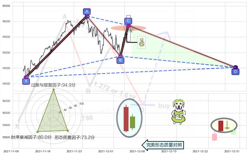 ➢ 距离预测D点位置有足够的下跌空间, 与看涨【伽利】形态相反,实际方向【看跌】