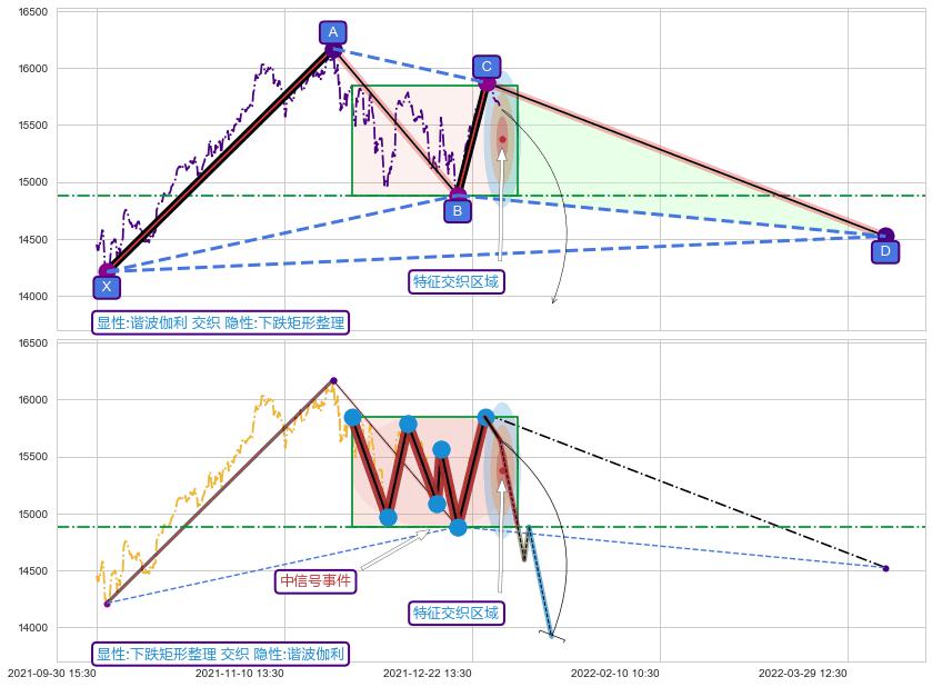 ➢ 下跌矩形整理属【中级别信号事件】谐波伽利属【长级别信号事件】中长周期组合信号事件,中长事件长度比37.86%