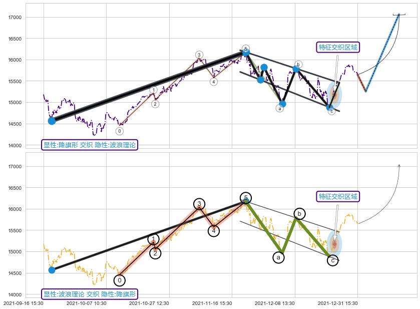 ➣ 波浪理论:猜想达到c点后小回调终止反转上涨 → 上涨 → 【拐点】临近 → 阶段均值回复结束后继续大周期趋势跟踪