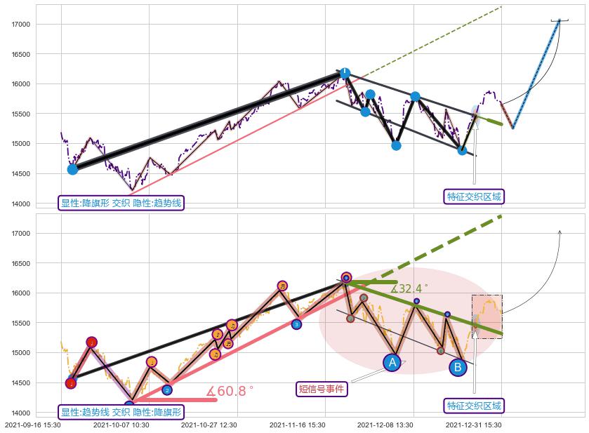 ➢ 最后的下跌趋势2021-11-22 09:30至2021-12-27 14:30:存在突破迹象,后续小反弹或者反转上涨
