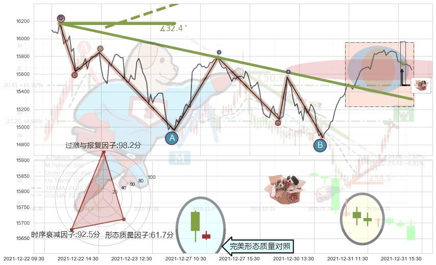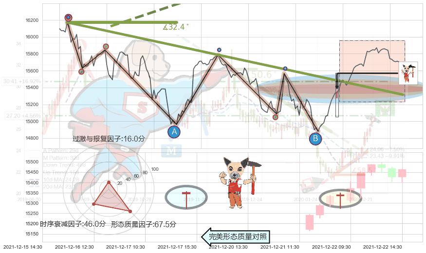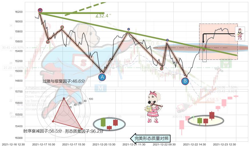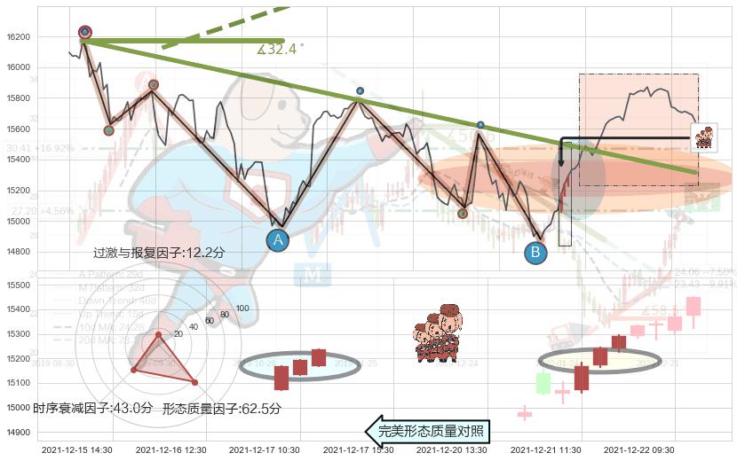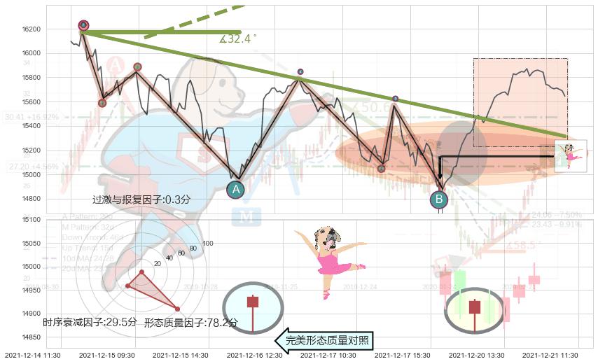 ➢ 2021-11-22 09:30-2021-12-27 14:30下跌趋势存在反转上涨[机会],其原下跌趋势的阻力位(15314.76)已被突破[强支撑信号],原下跌趋势角度: 32.4˚