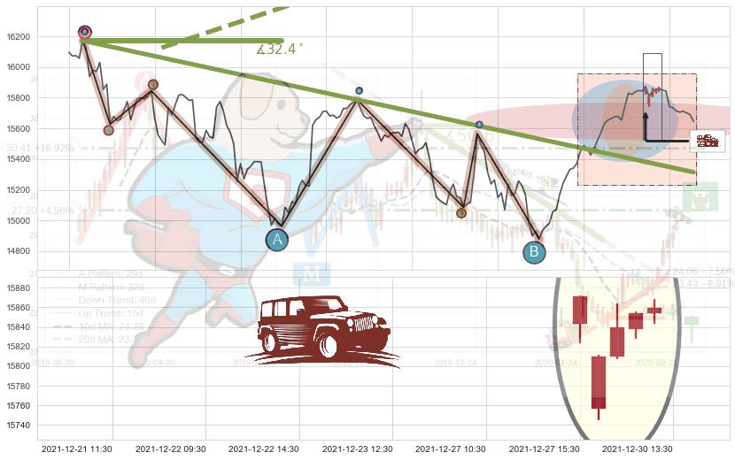 ♘ 阻力价格位15706.21,可信任强度55.78%,距离最后交易2021-12-31 15:30形成的收盘价格15645.00相差 +0.39%