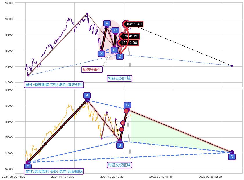 ➢ 谐波蝴蝶属【短级别信号事件】谐波伽利属【长级别信号事件】长短周期组合信号事件, 短长事件长度比18.10%