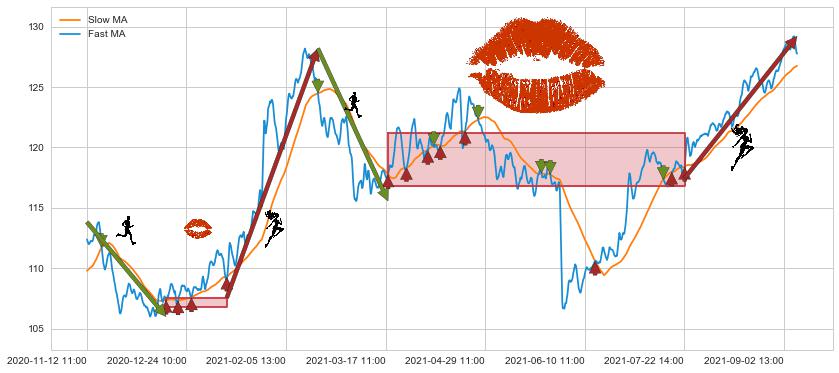03-18 09:00至07-23 09:00 慢线与快线多次接触,存在上下穿越,有缠绕