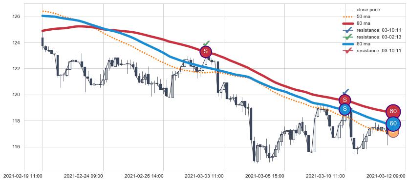 ➣ 70小时均线于(07-22 14:00: 118.23)形成【金叉】基于【金叉历史模型】预测金叉后最高波峰价格: 120.93, 金叉后最高价格129.46,已经上涨超出预测最高波峰价格, 预期回调