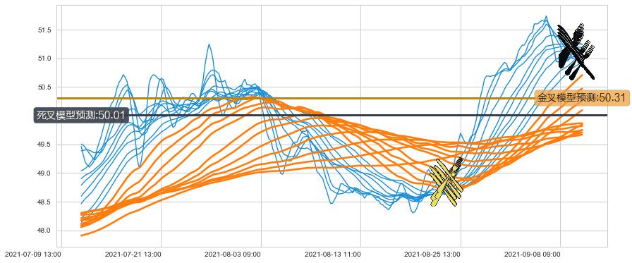 ➣ 55小时均线于(09-09 11:00: 50.99)形成【死叉】基于【死叉历史模型】预测死叉后最低波谷价格: 49.92, 死叉后最低价格50.75,尚未达到预测最低波谷价格, 预期继续下跌