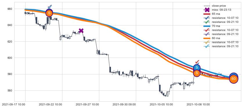 📝 多条均线形成死叉后走势最低价格达到: 540.75