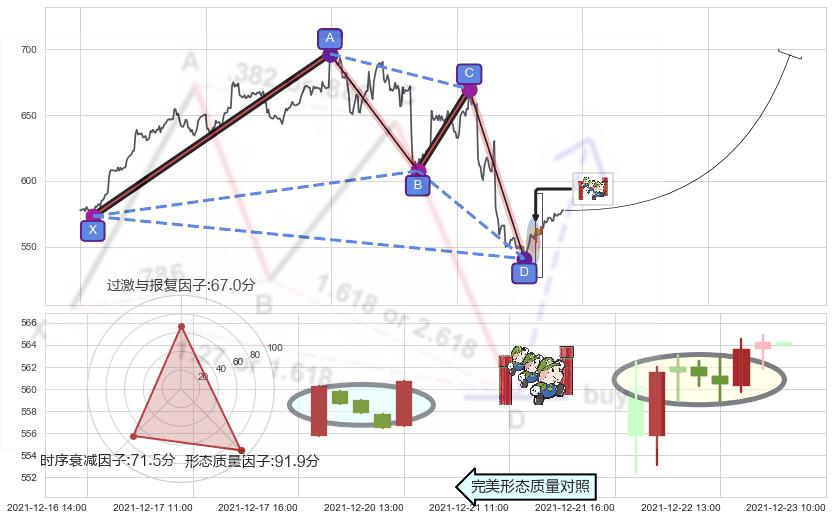➢ 中流砥柱形态 🔜 谐波蝴蝶d拐点上涨支撑 综合量化分数:61.38 【偏多】