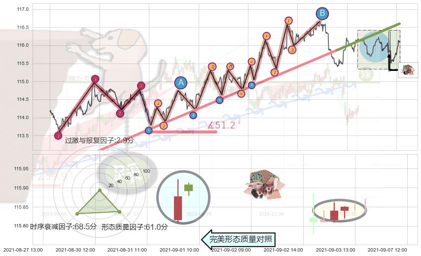 ➢ 🕰 价格走势在2021-09-07 12:00:00至2021-09-07 12:00:00期间形成单针探底(定海神针),残存影响值:3.35