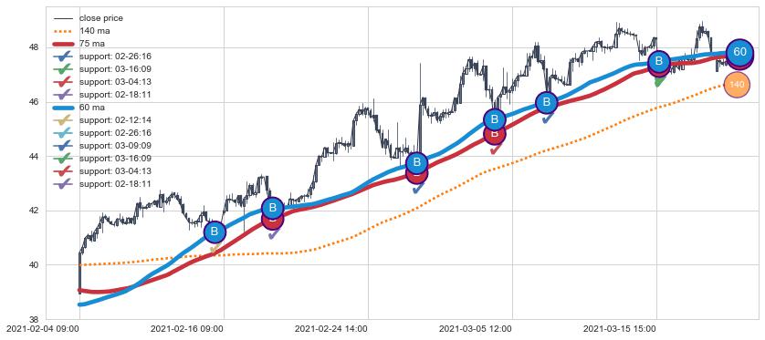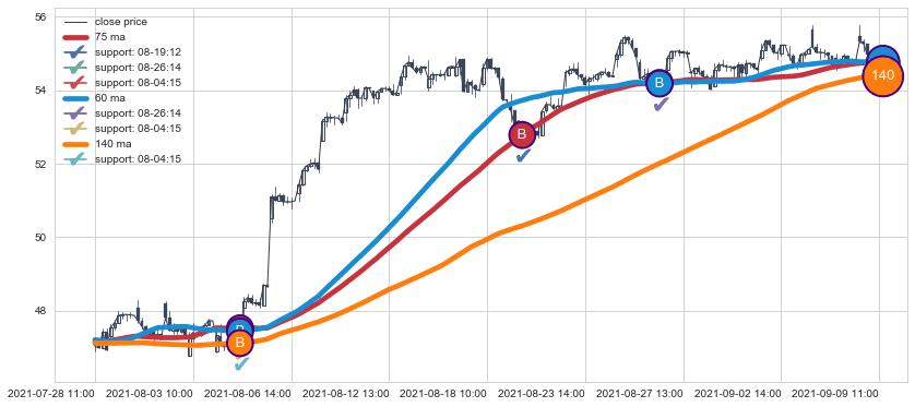 ➢ 140小时均线于(07-23 10:00: 47.26)形成【金叉】基于【金叉历史模型】预测金叉后最高波峰价格: 49.78, 金叉后最高价格55.43,已经上涨超出预测最高波峰价格, 预期回调