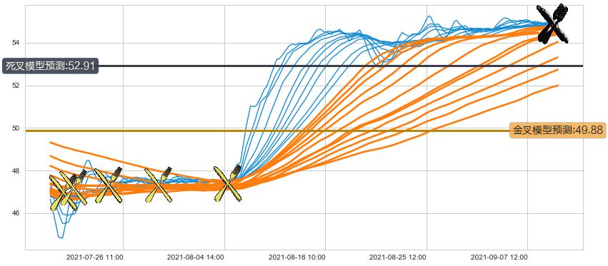 ➢ 13小时均线于(09-09 11:00: 54.91)形成【死叉】基于【死叉历史模型】预测死叉后最低波谷价格: 52.40, 死叉后最低价格54.66,尚未达到预测最低波谷价格, 预期继续下跌