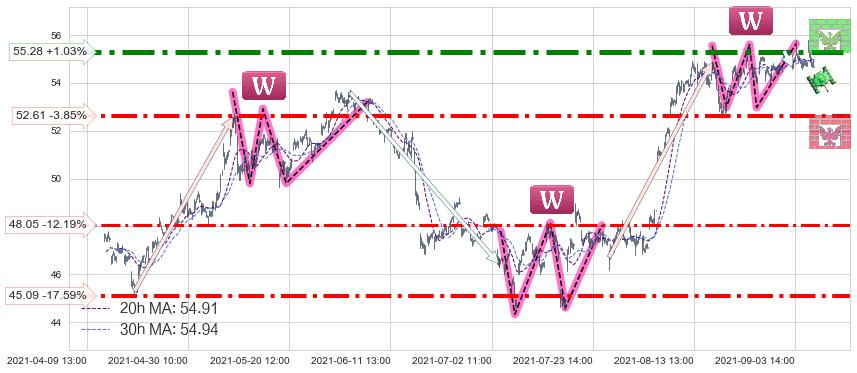 ♘ 阻力价格位55.28,可信任强度94.14%,距离最后交易2021-09-09 15:00形成的收盘价格54.72相差 +1.03%