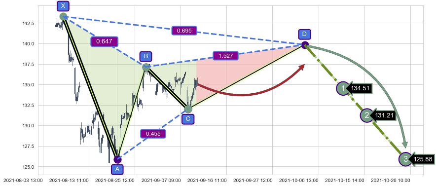 ➣ D点拟合预测价格139.84,距离最后交易收盘价格135.00相差 +3.58%