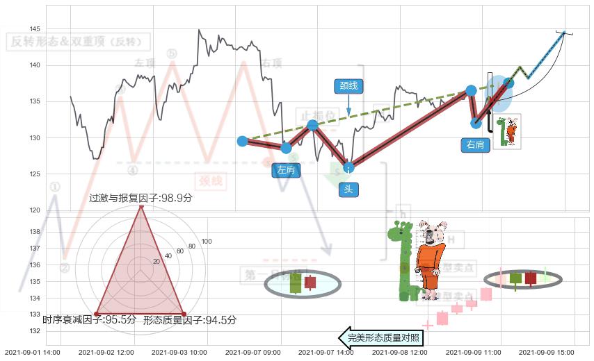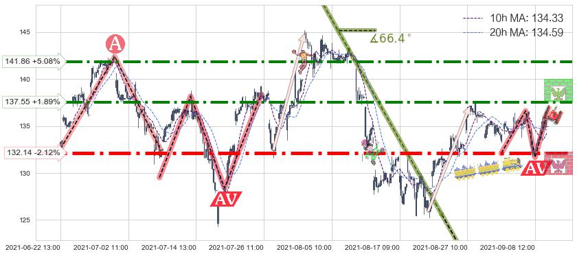 ♘ 阻力价格位137.55,可信任强度78.70%,距离最后交易2021-09-09 15:00形成的收盘价格135.00相差 +1.89%