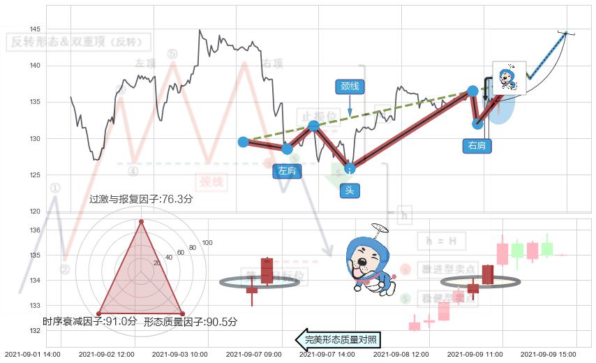 ➢ 🕰 价格走势在2021-09-09 09:00:00至2021-09-09 10:00:00期间形成上涨螺旋桨形态,残存影响值:6.81
