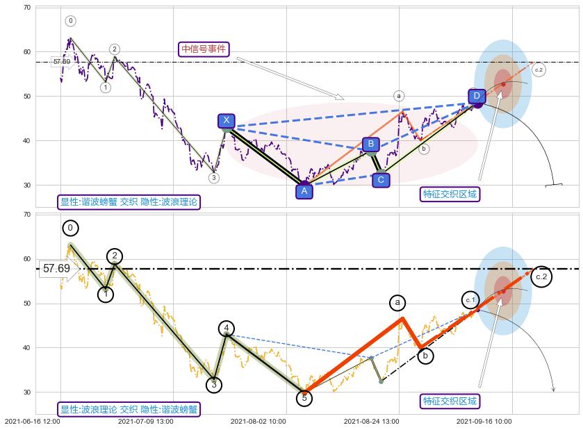 ➢ 谐波螃蟹与波浪理论信号事件周期长度级别相同,同周期信号事件