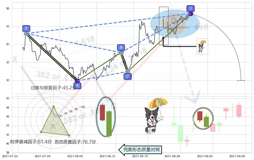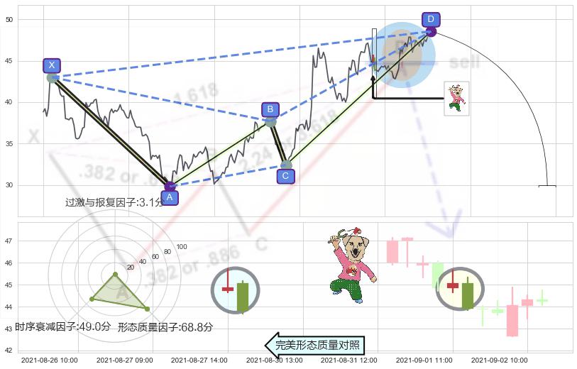 ➢ 射击之星形态 🔜 谐波螃蟹d拐点下跌阻力 综合量化分数:46.86 【中性】