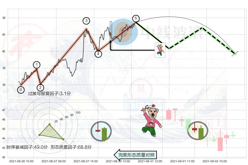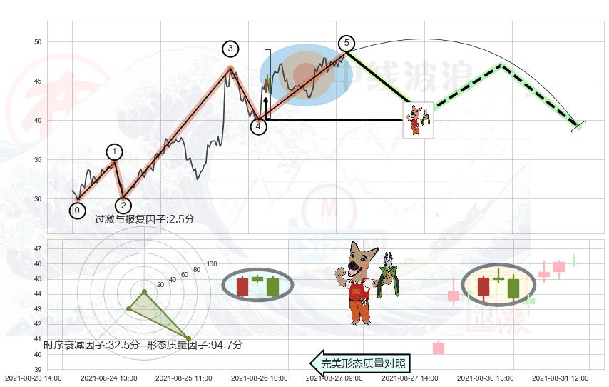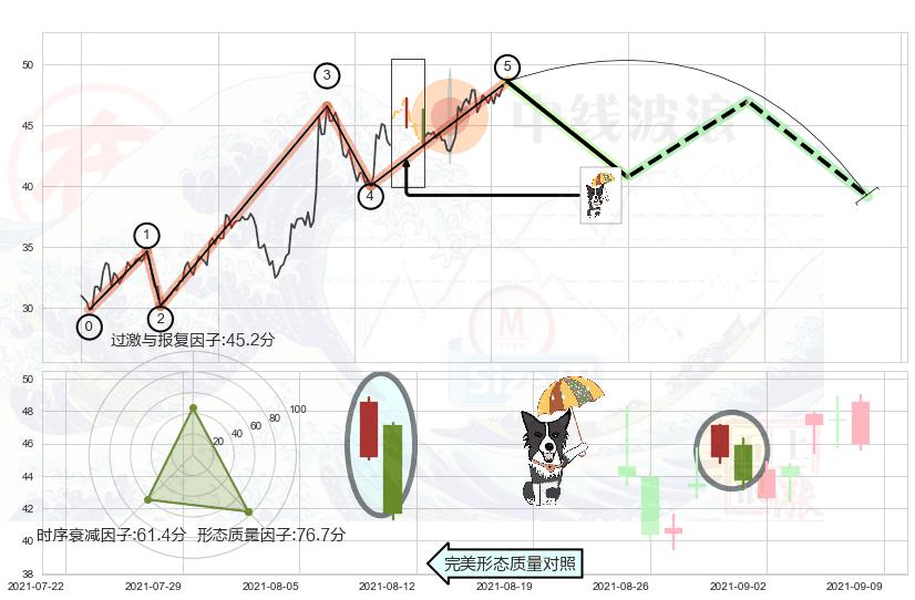 ➢ 射击之星形态 🔜 波浪理论上涨浪:浪5回调拐点 综合量化分数:47.35 【中性】