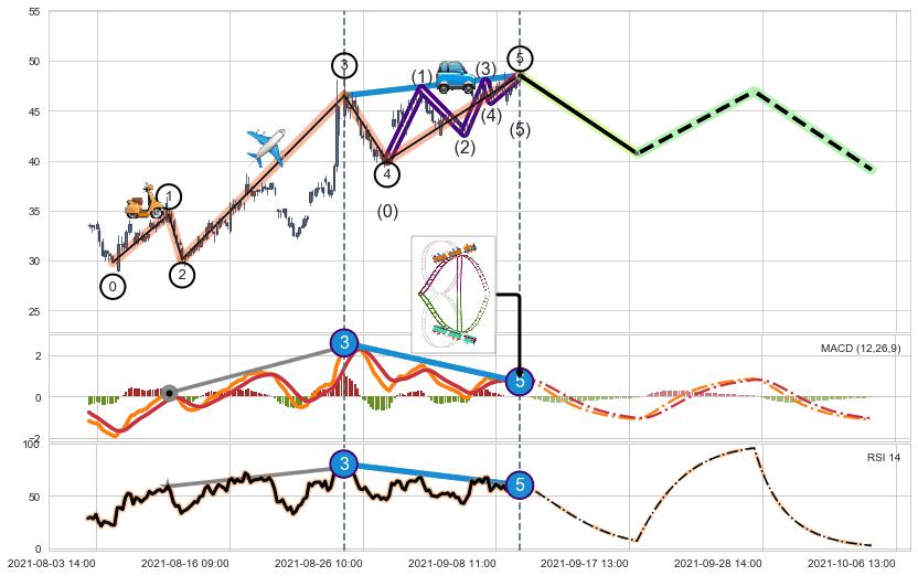 ➣ 波浪理论:猜想即将止涨 → 下跌 →【拐点】浪5临近 → 大趋势均值回复