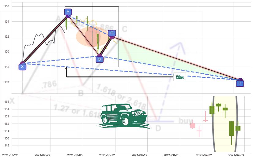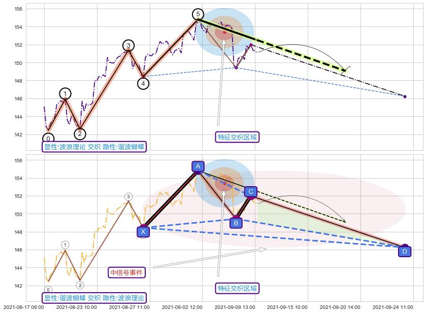 ➣ 未完成【蝴蝶】形态起点X: 08-26:14, 已到达C点: 09-09:11, 预测最终D点: 09-23:14, 共125交易小时