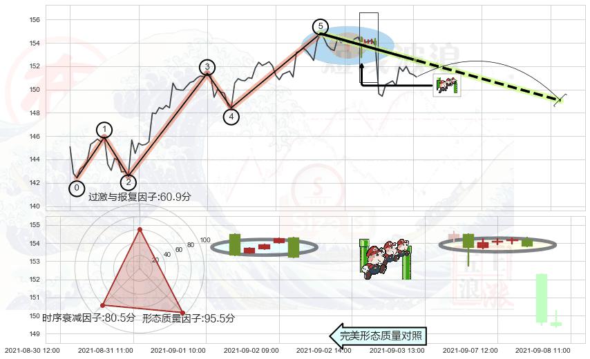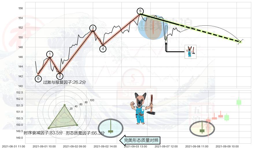 ➢ 🕰 价格走势在2021-09-02 00:00:00至2021-09-09 00:00:00期间形成高档五阴线,残存影响值:-4.54