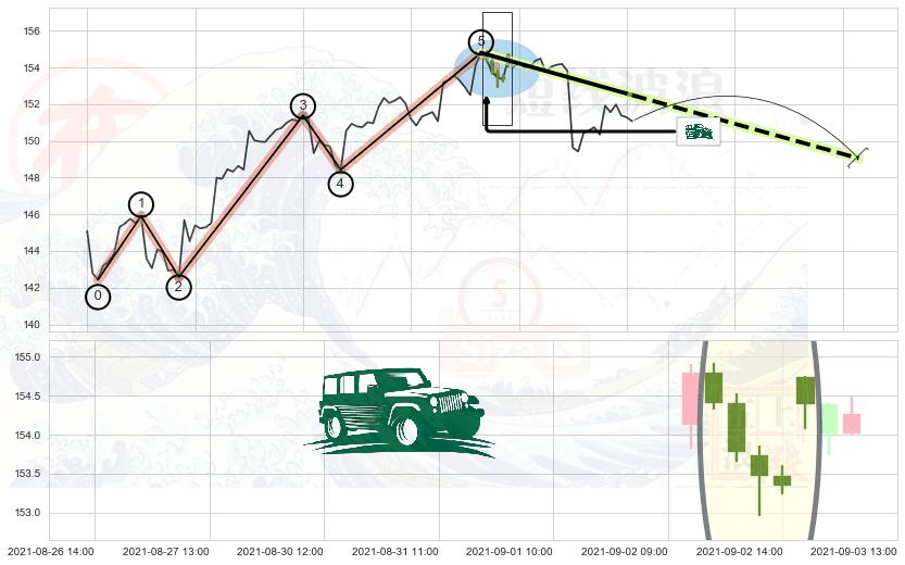 ➢ 🕰 价格走势在2021-09-02 11:00:00至2021-09-03 09:00:00期间形成高档五阴线,残存影响值:-2.68