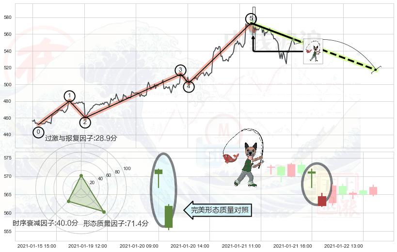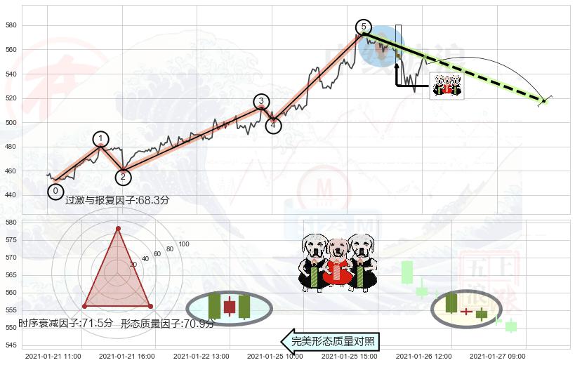 ➢ 🕰 价格走势在2021-01-21 16:00:00至2021-01-22 09:00:00期间形成吊颈线(上吊线),残存影响值:-3.33