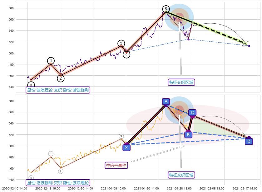 ➢ 循环浪继续向上【最高】位置(04-14:10, 675.71),匹配聚类样本比例21.56%, 可能性概率9.88%