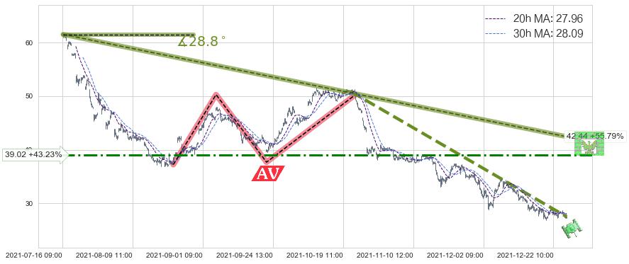 ♞ 20小时均线:27.96,30小时均线:28.09→ 快线<慢线
