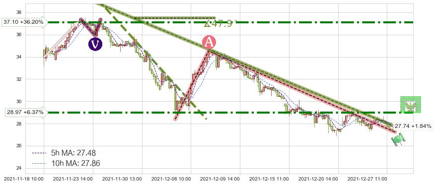 ♞ 5小时均线:27.48,10小时均线:27.86→ 快线<慢线