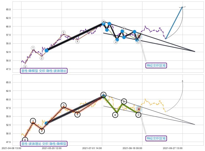 ➢ 降楔型与波浪理论信号事件周期长度级别相同,同周期信号事件