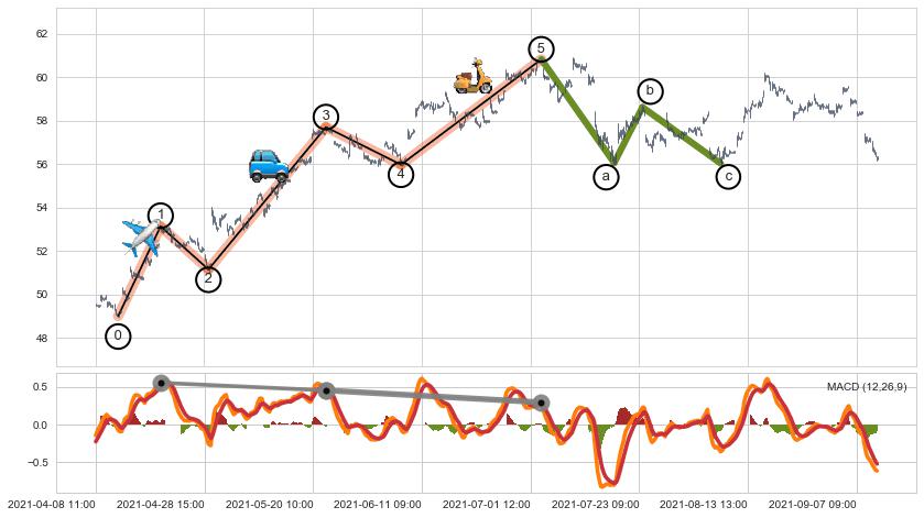 ➣ ['回调abc识别为: 【锯齿型调整浪】 ', '锯齿型:子浪535结构 ⓑ点振幅较小,ⓒ点继续发力远超ⓐ点结束位置']